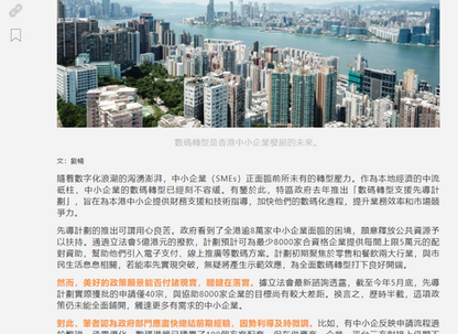 為會員提供各類免費講座和參訪行程,協助創業者了解香港社會情況,未來城市發展潛力,講座及參訪行程包括香港政治、司法制度、醫療、教育制度、金融市場,投資機遇,營商環境等